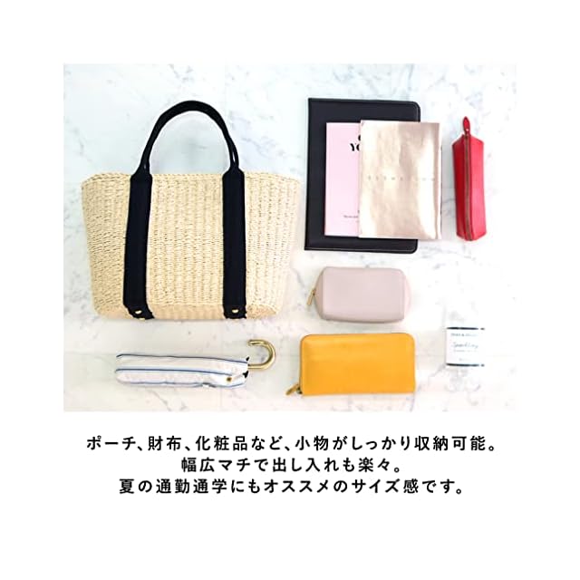 ●SIZE:高さ:約24cm / 幅:約39cm(上辺)約30cm(下辺)/ マチ:約16cm ●ハンドル長さ:約38cm×幅:約1.8cm、持ち手高さ:約15cm ●外ポケット:なし ●内ポケット:オープンポケット2、ファスナー付きポケット1 ●重さ:約490g ●素材:ペーパー/内生地:ポリエステル ●バッグのメイン開閉口はファスナーになっております。