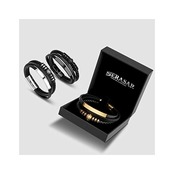 商品名:[SERASAR] メンズアクセサリー 17cm ゴールドブレスレット レザーバングル アームジュエリー 編み込みラップチェーンブレスレット