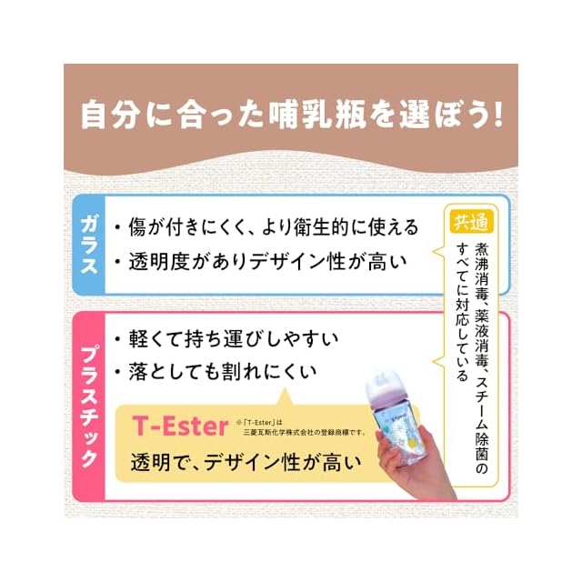 【素材】ほ乳器:プラスチック製 フード・キャップ:ポリプロピレン 乳首:合成ゴム(シリコーンゴム) びん:飽和ポリエステル樹脂