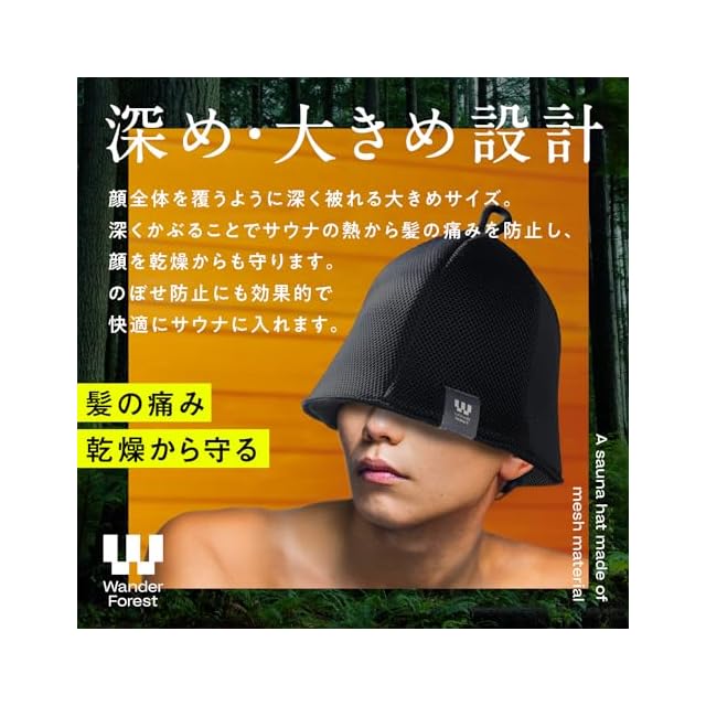 商品名:[Wander Forest] サウナハット 【速乾メッシュ2重構造】 超極厚 大きめ 深め メッシュ 2枚重ね サウナグッズ 蒸れない メンズ レディース 極厚 速乾 洗濯可 サウナ帽子 キャップ ダメージケア ブラック