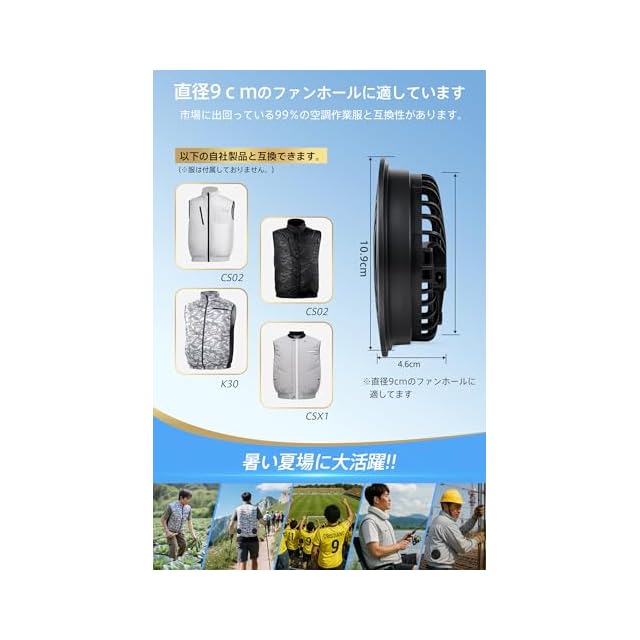 【様々なシーンで大活躍!】暑い時期のファン付き作業着として建設現場、物流業、工場内作業、屋外作業、倉庫作業などの作業場面で大活躍です。 暑い夏の普段着として、旅行、海水浴、山登り、フィッシングなどのアウトドア場面にも適するクールベストです。