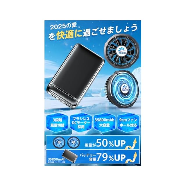 商品名:【2025革新型】 空調作業服 ファンバッテリーセット 暴風ファン & 強化9枚羽根 パワフル送風 軽量 大容量バッテリー 作業服用 大風量 3段階風量調節 暑さ対策グッズ 涼しい