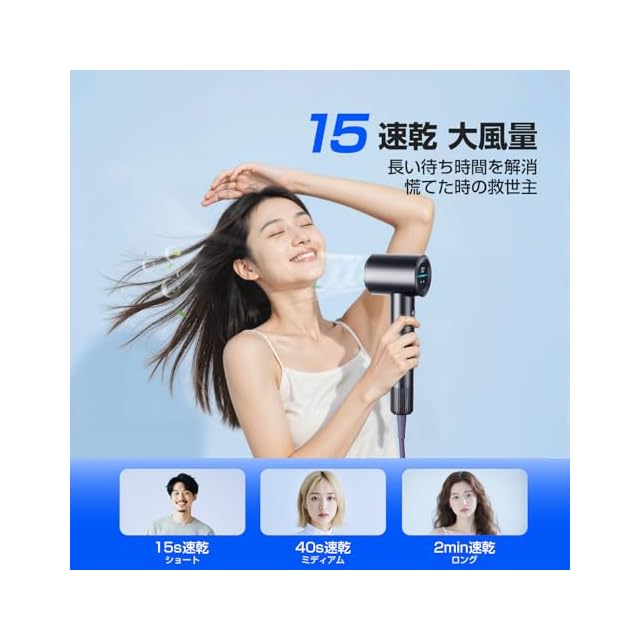 このドライヤー 速乾は2025年に新発売され、デジタルディスプレイ搭載し、風速と風温が視覚化され、状態が一目でわかります。機能面では、高濃度ネガティブイオンが髪の内部に浸透し、ナノケア ドライヤー 静電気を中和します。NTCインテリジェント温度制御システムにより、毎秒100回の温度モニタリングで過熱によるダメージを防ぎ、頭皮の健康を守ります。冷風と温風のインテリジェント循環モードで、スタイリングがより長持ちし、髪質がより強くなります。日本規格専用プラグ AC100V対応 ドライヤー 海外対応。 効率的な速乾を追求しながら、サロン級のヘアケアを体験し、あなたの美しい髪を健康に保ちます ドライヤーおすすめ!