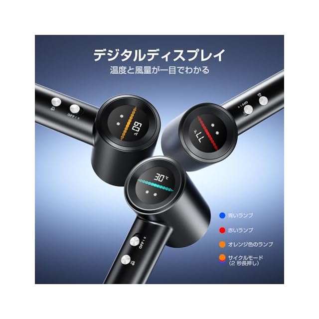 「温度の見える化」で髪ダメージゼロ革命! 高精細LED画面搭載ヘアドライヤーが「感覚調整」を終わらせる――風量&温度を数値で常時表示。3色スマート温度ガイド(ブルー/オレンジ/レッド)が最適な熱管理を実現し、サロンレベルのツヤ髪と自宅ケアの時短を両立。
