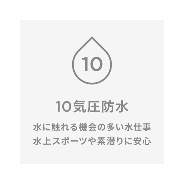 高い防水性:安心の10気圧防水(水に触れる機会の多い水仕事、水上スポーツや素潜りに安心)