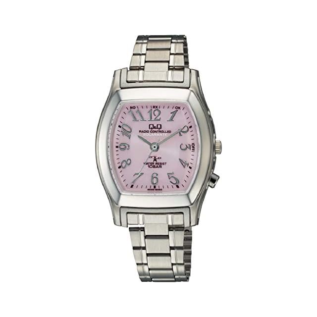 商品名:[キューアンドキュー] 10気圧防水 腕時計 アナログ 電波 ソーラー 防水 メタルバンド ピンク HJ05-205 レディース シルバー