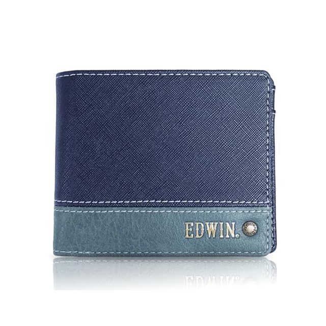 商品名:[エドウィン] 二つ折り財布 合皮 小銭収納 紙幣収納 カード収納 エンボス ステッチ リベット メンズ ネイビー