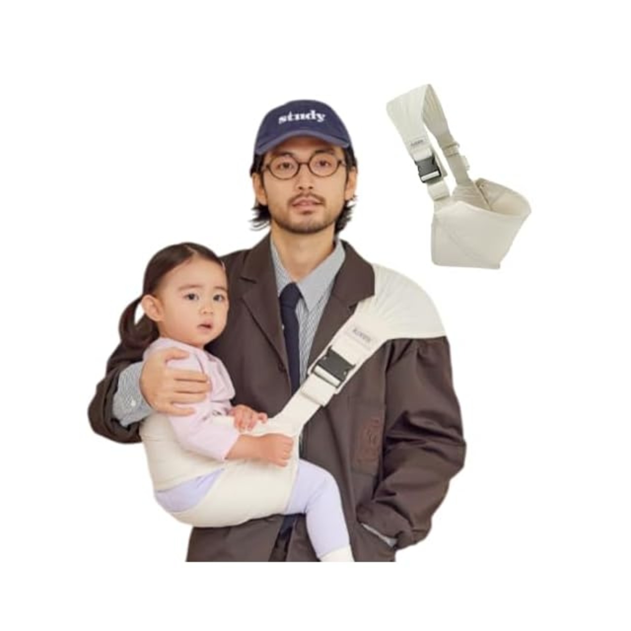 [Konny]【ママリ口コミ大賞受賞】【2024年グッドデザイン賞受賞】コニー安心 ヒップシート抱っこ紐 サイズ調節 ママパパ兼用 国際安全認証取得 IHDI 公式認証 収納袋付き 超軽量 230g 抱っこ紐 20kgまで対応 (クリーム)