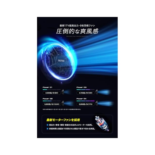 ✅【最新の大容量20,000mAh/高出力17V バッテリー・静音ファン】17V/20,000mAhの高出力で連続使用時間 最大30時間可能。(バッテリー重量)約415g バッテリー入れは軽量さを追求したジャスト設計。 風力はいっそう強く空気循環をすばやく強化し風速・風量レベルが非常に高い、静音の9枚羽根ファン。 大容量20,000mAh/17Vで風量は4段階レベル[パワー1]約30時間[パワー2]約21時間[パワー3]約12.5時間[パワー4]約7時間持続 ※充電時間や動作時間は、充電環境や本製品の使用頻度、モード、組み合わせによって異なります。 ファン定格電源:17V⎓0.52A ファン2個重量:203g(接続ケーブルを除く)