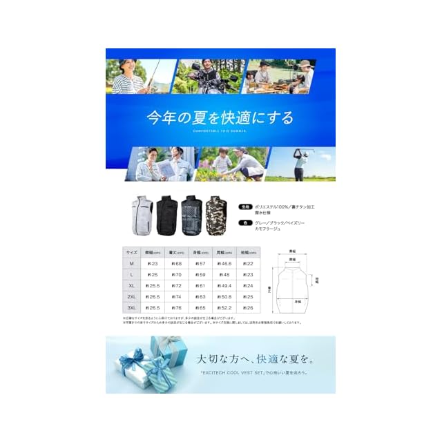 ✅【豊富なサイズ展開】M、L、XL、2XL、3XL。サイズ表をご参考のうえご注文くださいませ。 ※多少の誤差はご了承ください。 ✅【洗濯可能】ベストは洗濯機でのお洗濯が可能です。※チタン加工効果を長く持続させるため、ファスナーを閉めて洗濯ネットに入れ、弱いアルカリ性洗剤をご使用ください。※洗濯前に必ずモバイルバッテリー、ファン、ケーブル、保冷剤等を取り外してください。 ベストを乾かす際は、内側のチタン加工を日差しに直接当たらないようにしてください。
