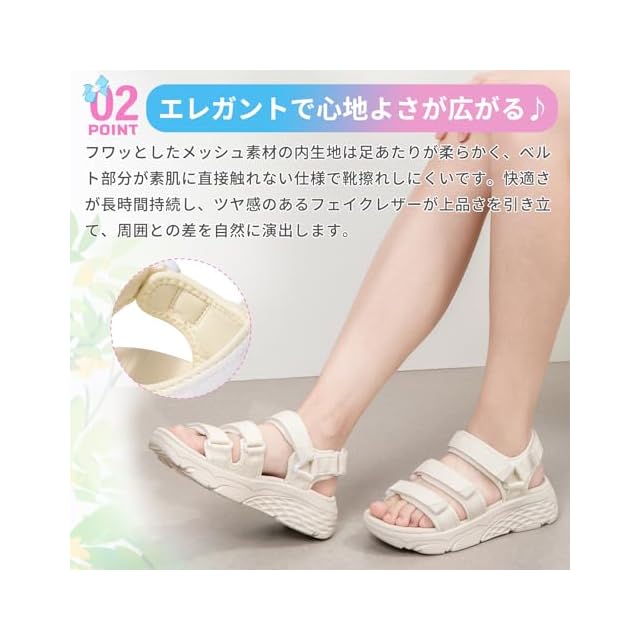 【かわいいスタイリッシュ 軽量で歩きやすい】この女性用厚底スポーツサンダル、可愛くておしゃれなデザインでありながら、シンプルで魅力的です。片足約180gの軽量設計,長時間の歩行も快適。ソールの高さは4cmで、適度な体格比率をアップし、美脚効果を実現、自信を増強します。履き心地の良さとスタイルアップを両立!夏に欠かせない1足です。
