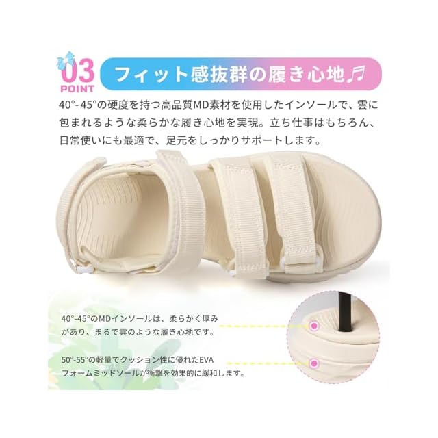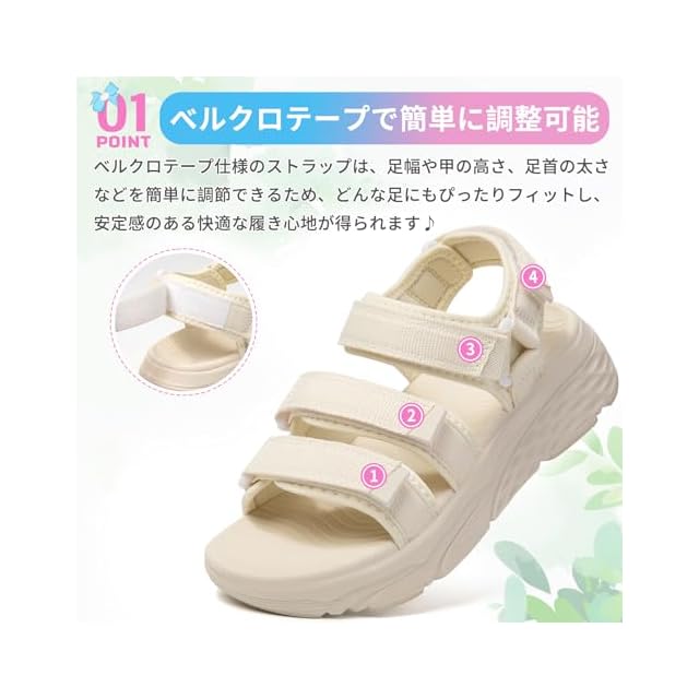 【マジックテープ調整可能】ファッション厚底サンダルの特徴的な点は調整可能性であり、便利なマジックテープデザインを採用しており、簡単に調整して足に合わせることができます。サンダルのフィット感も非常に良く、足に心地よくフィットして快適な履き心地です。