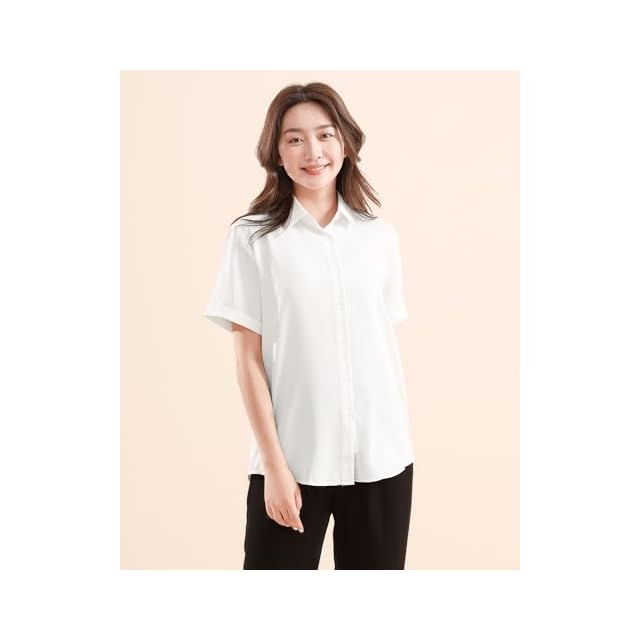 [YASHIGE] シャツ レディース 半袖 トップス 半袖シャツ 襟付き フレンチスリーブ 付き フォーマル シンプル 無地 薄手 透け感 オフィスブラウス オフィスカジュアル オフィス カジュアル 通勤 通学 春 夏 ファッション 業務服 高通気性 ホワイト M | Trend Design BASE店