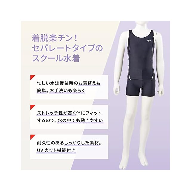 【セパレートタイプ】小学校や中学校の水泳の授業、部活やスイミングスクール、市民プールなどにおすすめのジュニア女子用の水着。上下がセパレートなので、着脱しやすいのが特徴です。トイレも楽に済ませることが出来て、さらに嬉しい◎