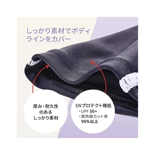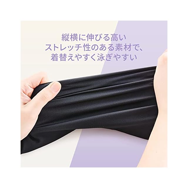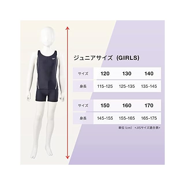 【体形にフィット】縦横に伸びる高いストレッチ性のある素材を使用。ボトムスは、ボディラインをカバーするスパッツタイプで股下9㎝(140cmサイズの場合)となっています。胸元裏地にはパットを入れるためのポケットが付いており、小学校高学年や中学生にも安心してお使いいただけます。