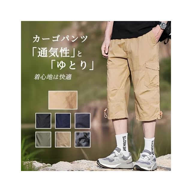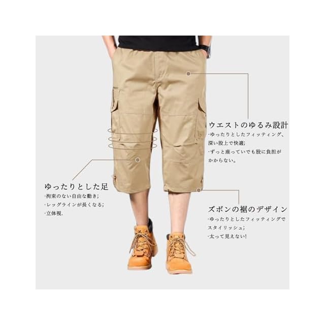 [素材] ワークパンツ メンズ 7分丈 綿素材で作られており、柔らかく快適な着心地を提供します。肌に優しい素材で、日常着として最適です。