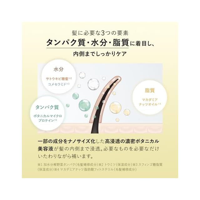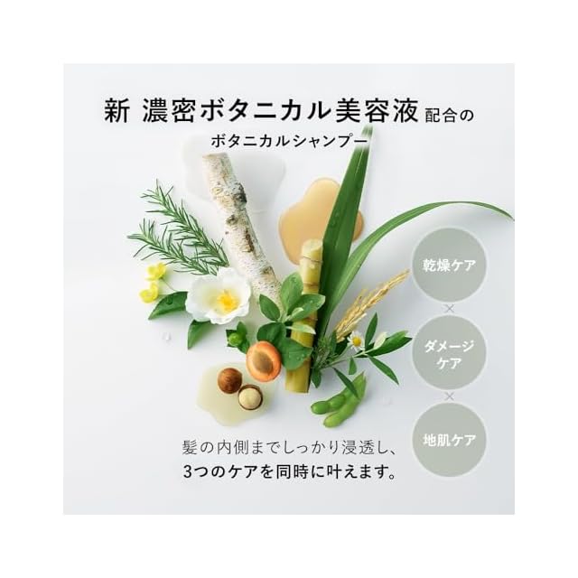 シャンプー トリートメント セット 「髪を自然で満たしきる」 まとまりのある、しっとりとした髪に洗い上げます。 華やかで優雅なアプリコットとジャスミンの香り [シリコンフリー パラベンフリー 合成着色料フリー サルフェート※1 フリー] ①全バリアントに新配合成分を含む共通成分「濃密ボタニカル美容液※2」 「濃密ボタニカル美容液※2」が叶える3つのケア ・地肌ケア … 2種のシラカバウォーター※3、グリチルリチン酸2K(保湿成分) ・保湿ケア … サトウキビ糖蜜※4、コメセラミド※5(ナノ化) ・ダメージケア … マカダミアナッツオイル※6(ナノ化)、ボタニカルマイクロプロテイン※7 ②5種の仕上がりのラインナップごとに厳選した植物成分を配合 アンズ核油(保湿成分) ③環境に優しい CO2排出削減ボトル、バイオマスインキ使用ラベル ※1 硫酸系界面活性剤 ※2 シラカンバ樹液、ガラクトミセス/シラカンバ樹液発酵液、トウミツ、スフィンゴ糖脂質(全て保湿成分)、マカデミアナッツ脂肪酸フィトステリル、加水分解野菜タンパク(全て毛髪補修成分) ※3 シラカンバ樹液、ガラクトミセス/シラカンバ樹液発酵液(すべて保湿成分)※4 トウミツ(保湿成分)※5 スフィンゴ糖脂質(保湿成分) ※6 マカデミアナッツ脂肪酸フィトステリル(毛髪補修成分)※7 加水分解野菜タンパク(毛髪補修成分)