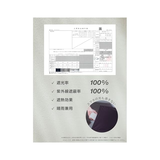【夏の日差しも怖くない遮光率・UVカット率100%生地】 遮光率・紫外線遮蔽率ともに100%の生地を使用(※)。また、近赤外線遮蔽率も100%、遮熱効果もあり、日傘として最高レベルの効果があります。