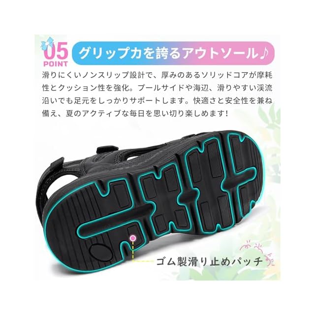 【流行りのスニーカーサンダル】甲部分を覆うデザインでスニーカー感覚。メッシュ素材なので夏は涼しく快適、蒸れにくいので心地良く履けます。甲を覆うので、靴下とも相性がよく、スニーカーのようなウェアリングができる,かわいい便利なサンダルです!