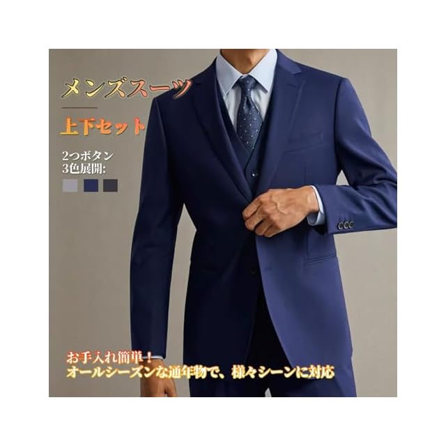 [Yeagio] スーツ メンズ 上下セット 2点セット 裾上げテープ付 ビジネススーツ セットアップ 礼服 結婚式 フォーマル 無地 メンズスーツ 2つボタン 就職スーツ パーティー | Trend Design BASE店
