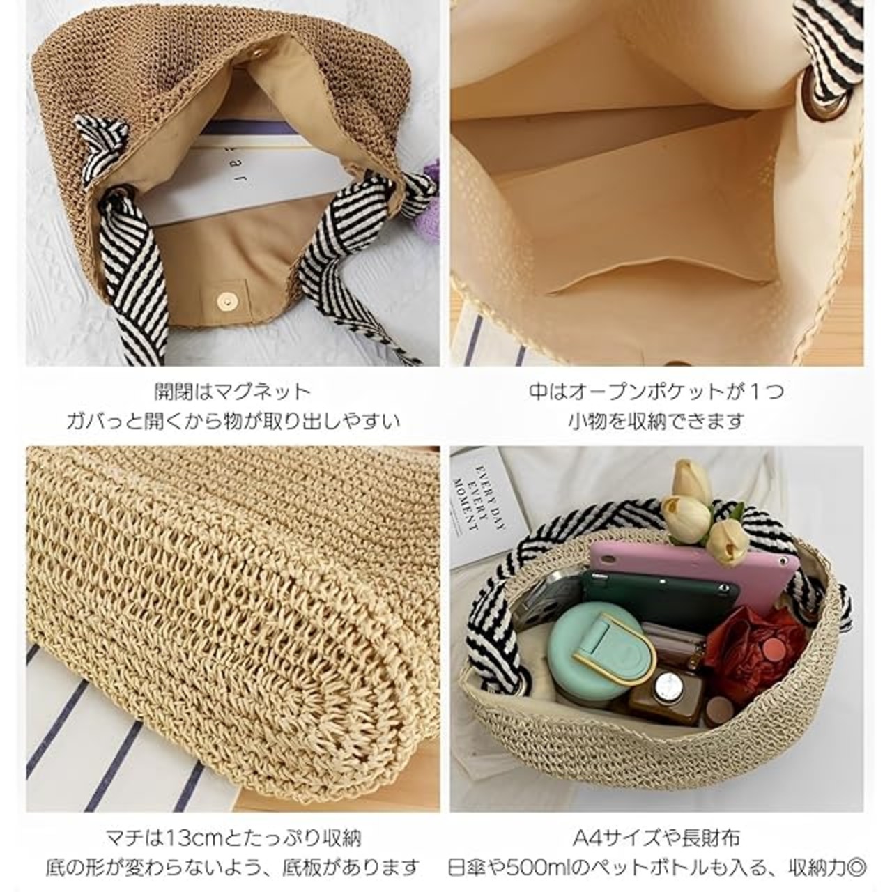 商品名:[マグノ] 草編み トート カゴバッグ ストローバッグ レディース 肩掛け トートバッグ ショルダーバッグ かばん (ブラウン)
