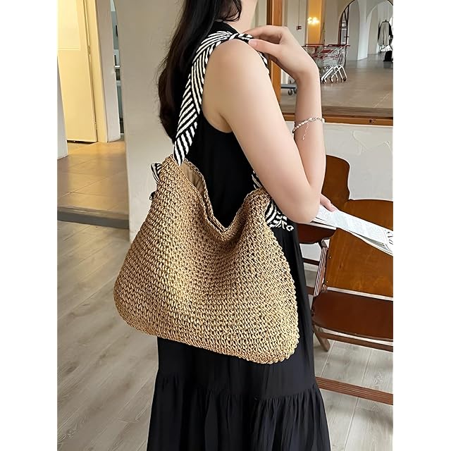 [マグノ] 草編み トート カゴバッグ ストローバッグ レディース 肩掛け トートバッグ ショルダーバッグ かばん (ブラウン)