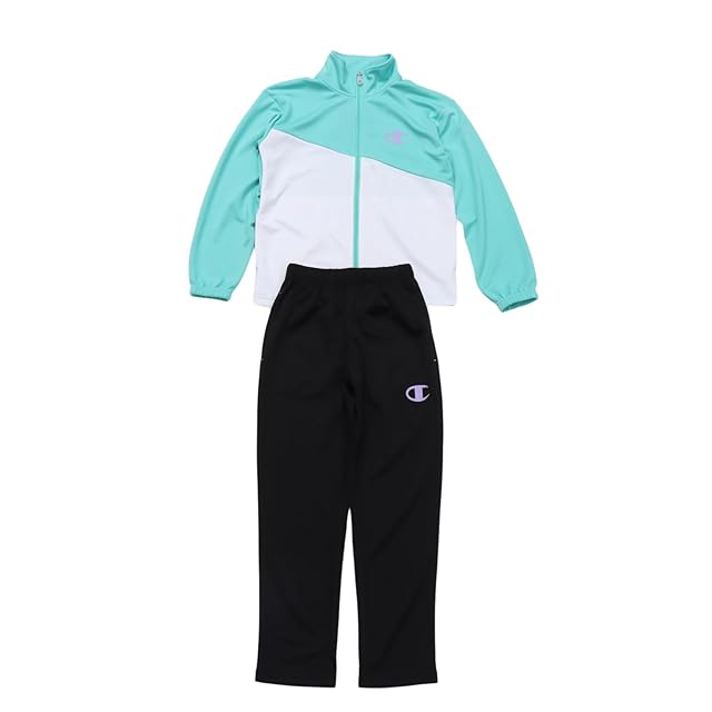 [チャンピオン] ジャージ上下 キッズ 長袖 2枚組 速乾 ワンポイントロゴ ラバープリント トレーニングスーツ ベーシックスポーツ CK-BSW01 ライトブルーグリーン | Trend Design BASE店