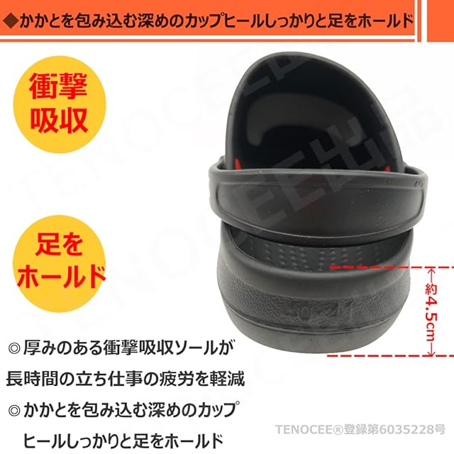 [TENOCEE] 厨房シューズ コックシューズ 業務用 ブラック 軽量 耐油 耐滑 メンズ 厨房靴 業務用靴 25.0cm 24.5cm ブラック 黒L(38/39) | Trend Design BASE店