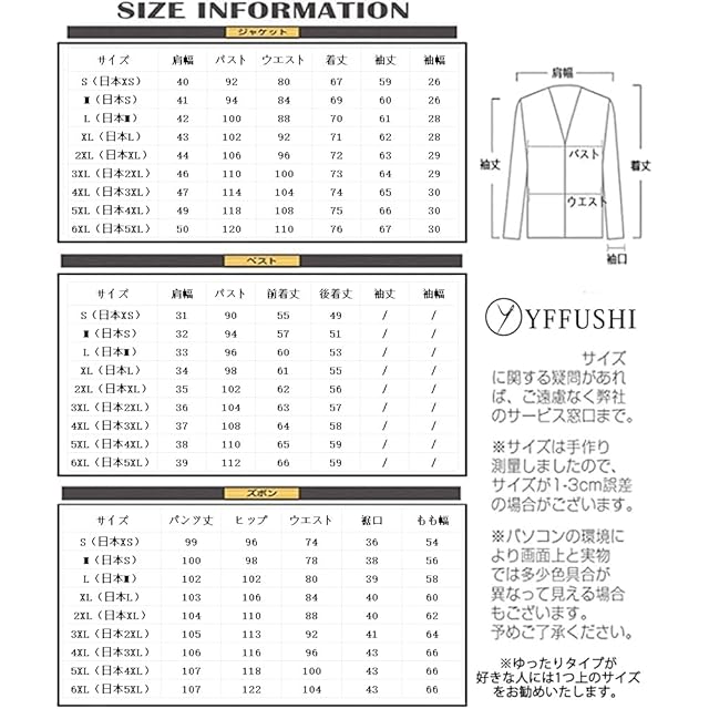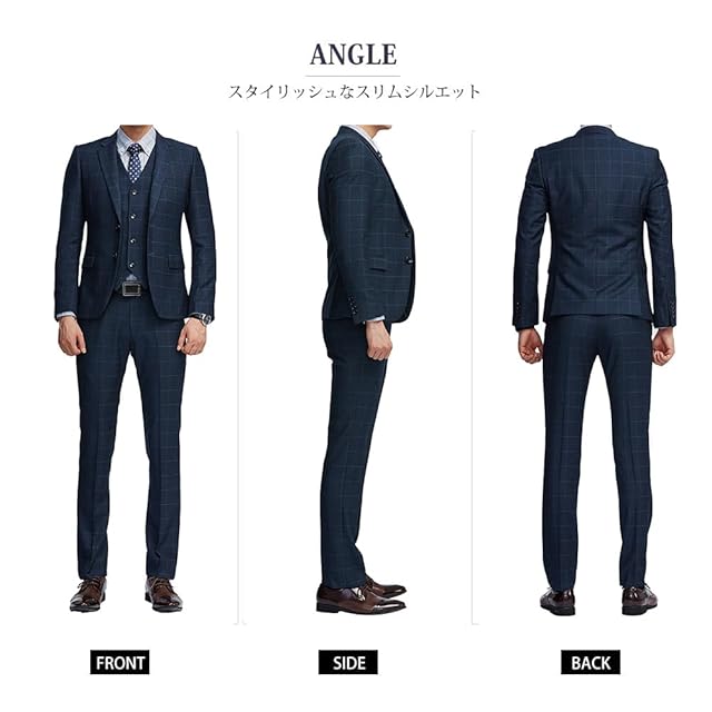 [YFFUSHI] スーツ メンス スリーピース チェック 6柄 XS-5XL立体的な縫製を取り入れて、汗止め、通気性、保温性に優れ、伸縮性のある素材を使用で、抜群の肌触りと着心地がある。ビジネス、卒業式とウエディングに最適!非常に良い身なり効果。カジュアルスタイルで活きる格好になります。洗練された高級感があり、スマートでどこかお洒落でカッコいい雰囲気を出してくれます。スリムなラインを活かすデザインのスリムスーツです。