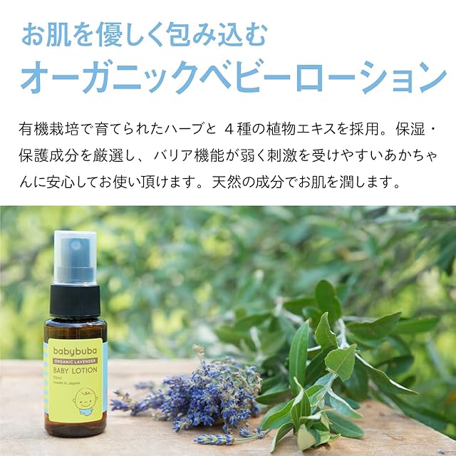 【オーガニックラベンダーによるリラックス効果】赤ちゃんがリラックスしやすい天然の優しい香り。スキンケアにおけるスキンシップを通じて、ラベンダー花水とラベンダー油の香りで大人も赤ちゃんもリラックスできる心地よい眠りを促します。