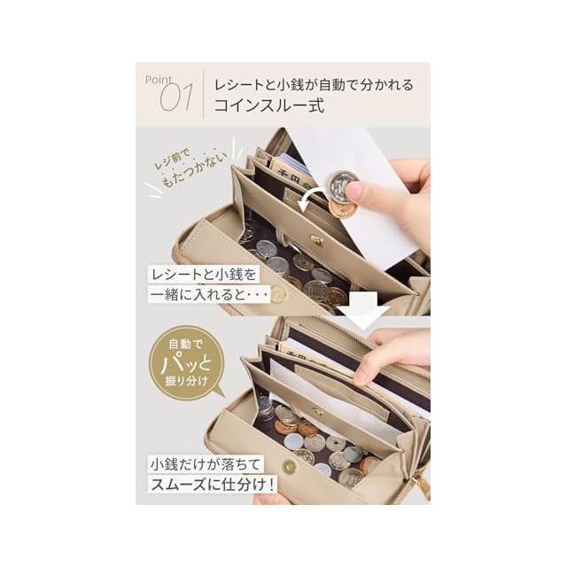 [NEESE] 長財布 コインスルー レシートと小銭を自動で仕分け 本革 ボックス型コインケース 財布 レディース 多機能 ウォレット 金ファスナー 母の日 ギフト 大容量 (h.グレージュ) | Trend Design BASE店