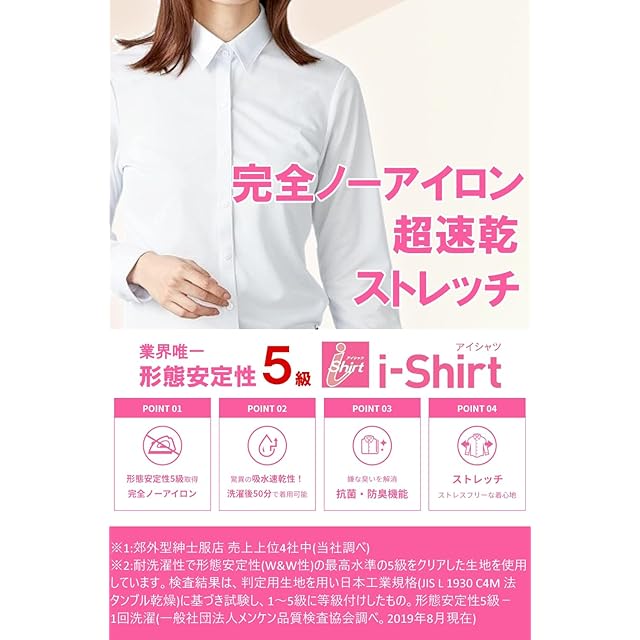 商品名:[アイシャツ] i-Shirt レディース ブラウス ワイシャツ 完全ノーアイロン ストレッチ 超速乾 アイシャツ きれいめ リクルート オフィス 形態安定 半袖 無地 ホワイト レギュラーカラー 15号