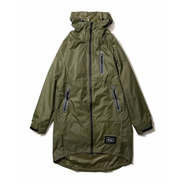 KiU【2024】キウ 軽量 雨対策 収納袋 持ち運び簡単 はっ水 防水 シンプル かわいい おしゃれ メンズ レディース 男女兼用 レインコート レインジップアップ カーキ K116-906 | Trend Design BASE店