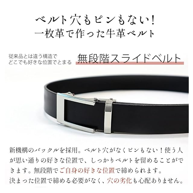 商品名:栃木レザー 無段階スライドベルト 日本製 スムーズロックモデル 国産 スライドベルト メンズ ビジネス カジュアル 穴なし 本革 オートロック ゴルフ (ブラック)
