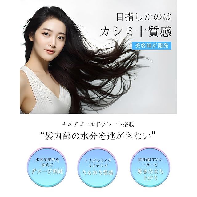 業界初の布製プレート:本ヘアアイロンは、従来の金属プレートとは異なり、布製のヒーターカバーを採用しています。熱が髪に直接触れにくい構造で、過度な加熱を抑え、ヘアダメージのリスクを低減します。使用時に気になるような焦げたニオイも発生しにくく、繊細な髪やダメージヘアの方にも使いやすい設計です。なめらかなストレートヘアと自然なツヤ感をサポートします。