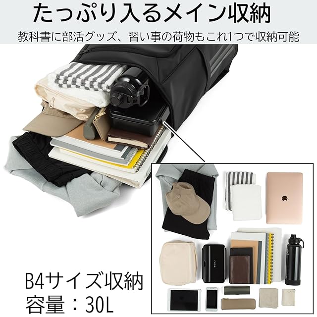 [アディダス] リュックサック スクールリュック 通学リュック 大容量 中学生 高校生 B4サイズ収納 15.6インチPC収納 大容量リュック 30l No.68571 メンズ ブラック×ブラック H48×W32×D19cm | Trend Design BASE店