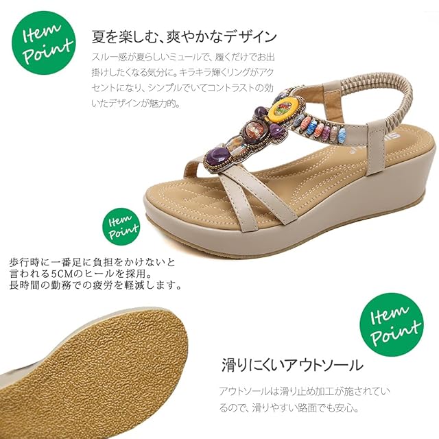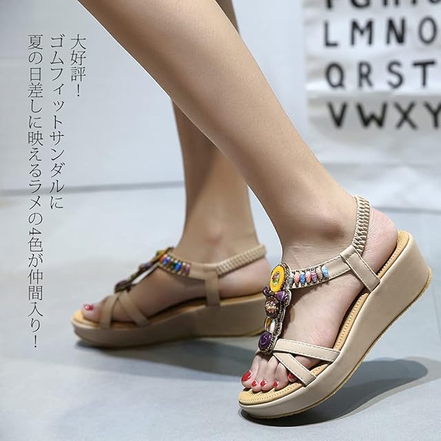 商品名:[AOIREMON] サンダル レディース ぺたんこ お洒落 ガールズ ビーチサンダル ローヒール ボヘミア風 ファッションサンダル スリッパ ビジュー サンダル ハワイ風 キラキラ 厚底 旅行 夏 婦人靴 歩きやすい
