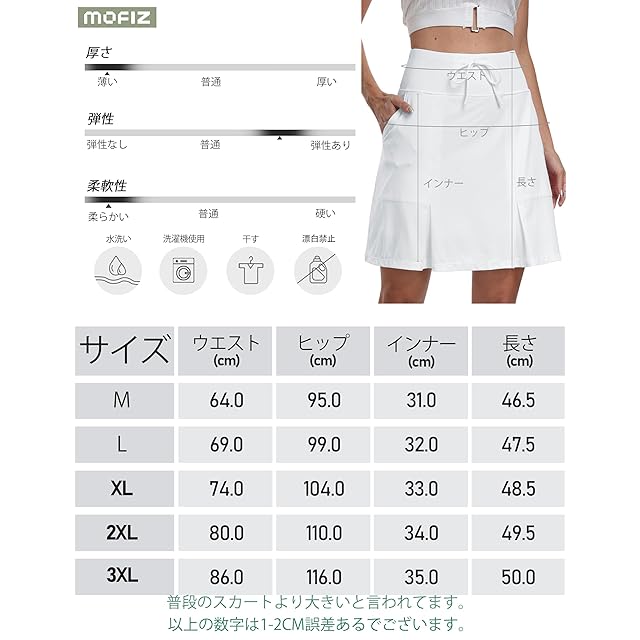 商品名:[MoFiz] スポーツスカート レディース ゴルフスカート 長め テニススコート 大きいサイズ プリーツ 着痩せ 通気 インナーパンツ付き ゴルフウェア 夏 運動着 日常服 可愛い golf