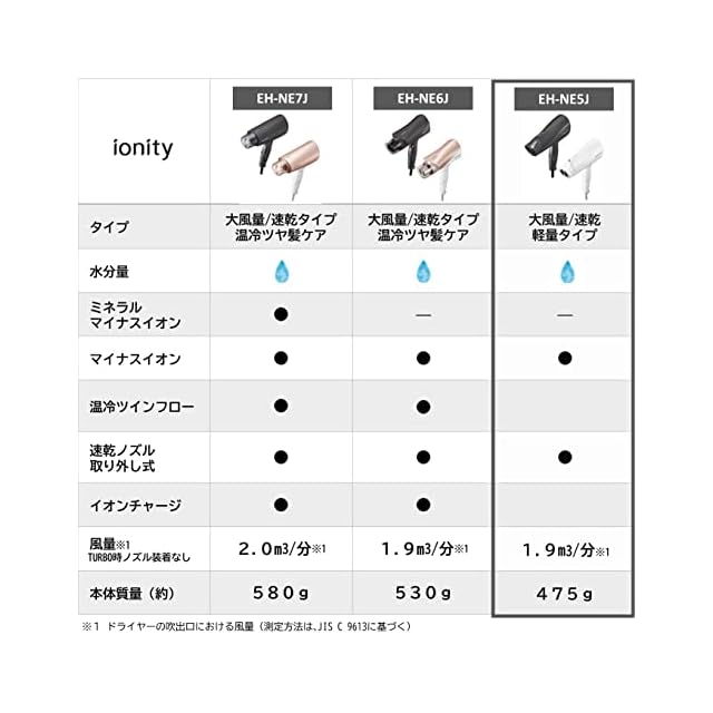 商品名:パナソニック ドライヤー イオニティ パワフル乾燥 大風量 軽量 マイナスイオン ホワイト EH-NE5J-W