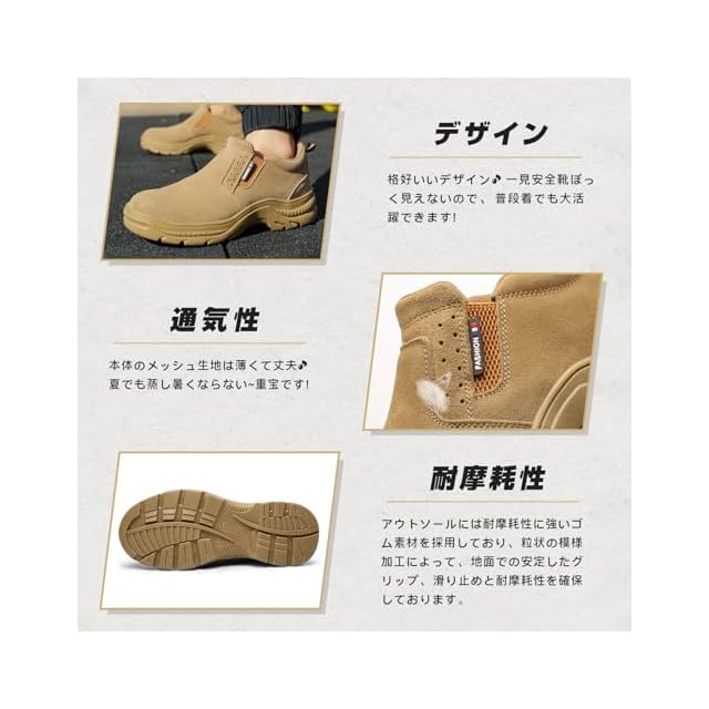 [PAFHL] 安全靴 メンズ 作業靴 セーフティーシューズ 鋼先芯 つま先保護 滑り止 釘踏み抜き防止 シューズ 靴 撥水 滑り止 軽量 通気 24-28cm (カーキ, 26.5cm) | Trend Design BASE店