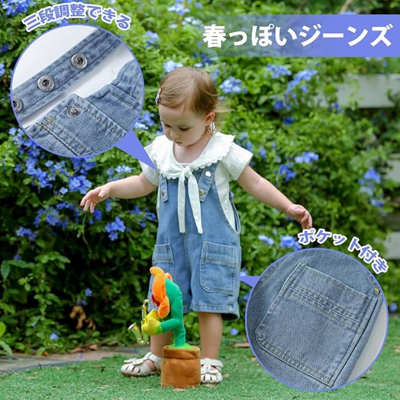 かわいいデザイン‐サロペットのデニムパンツと白いシャツのセットだから、可愛い赤ちゃんにぴったりです。ドールネックのデザインで、女の子にぴったりです。デニムドレスにポケットがつき、オシャレでファッションです。シンプルなデザインでシーズンを問わず、カジュアルに着こなせる一枚です