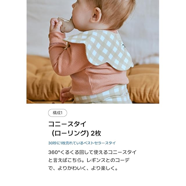構成②:ハイウエストレギンス1枚 赤ちゃんの初めてのレギンスにぴったり!コニースタイと合わせて着せれば、可愛らしいコーデが完成。やわらかく、お腹を快適に包みこむ腹巻付き。