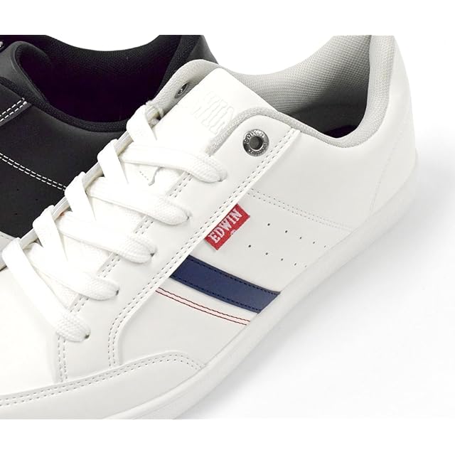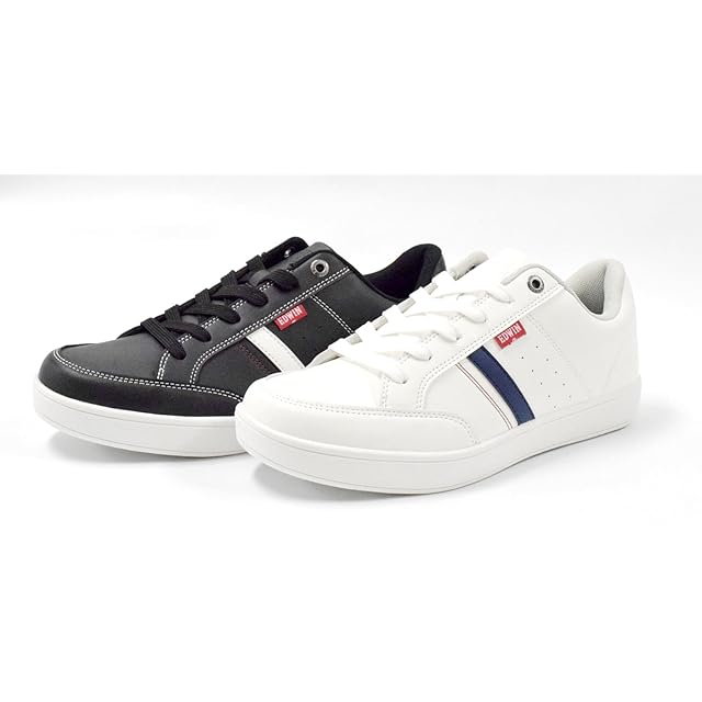 商品名:[エドウイン] メンズ 靴 スニーカー コートスニーカー おしゃれ かっこいい カジュアル シンプル 合わせやすい 軽量 外羽根 サイドライン ブラック 25.5 cm