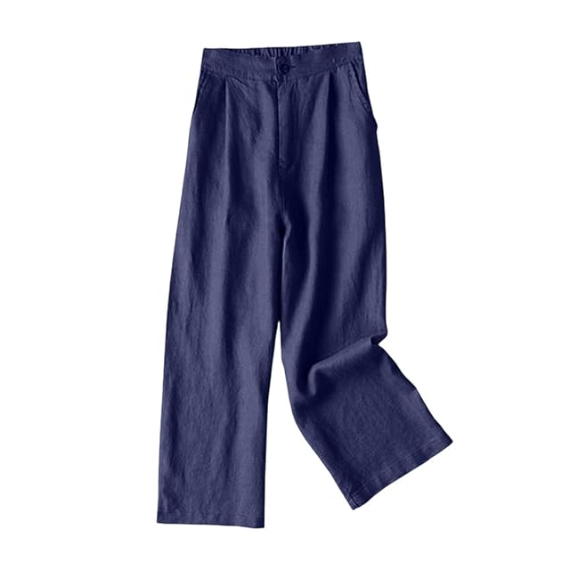 [F8eight] 綿麻専門店 ズボン 9分丈 上質 ワイドパンツ ポケット付き カジュアル ゆったり ウエストゴム 前ジップ おしゃれ 美脚 着痩せ 体型カバー シンプル 無地 春 夏 秋 通勤 ストレートパンツ 通学 日常 | Trend Design BASE店