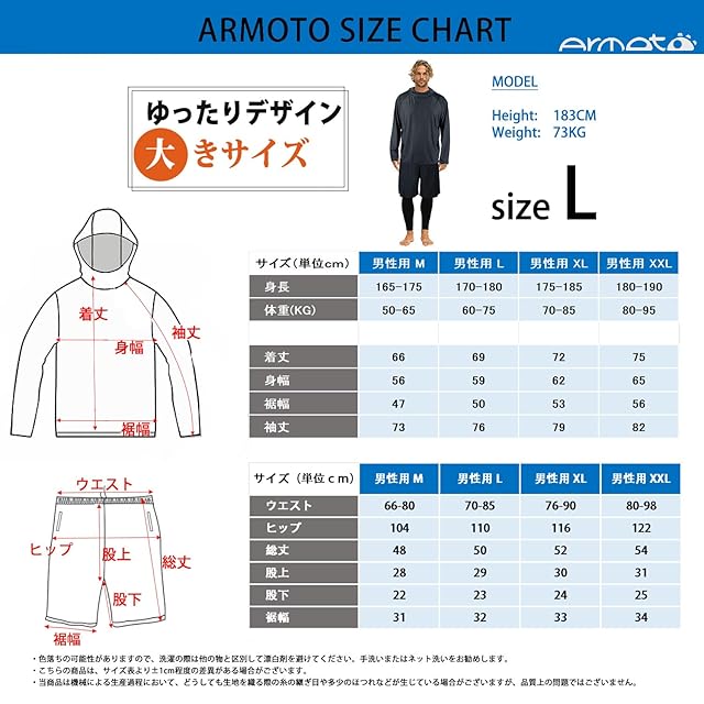 商品名:【ARMOTO】ラッシュガード メンズ 水着 パーカー レギンス サーフパンツ フィットネス 三点セット[UVカット UPF50+・吸汗速乾] 水泳 水陸両用 大きいサイズ