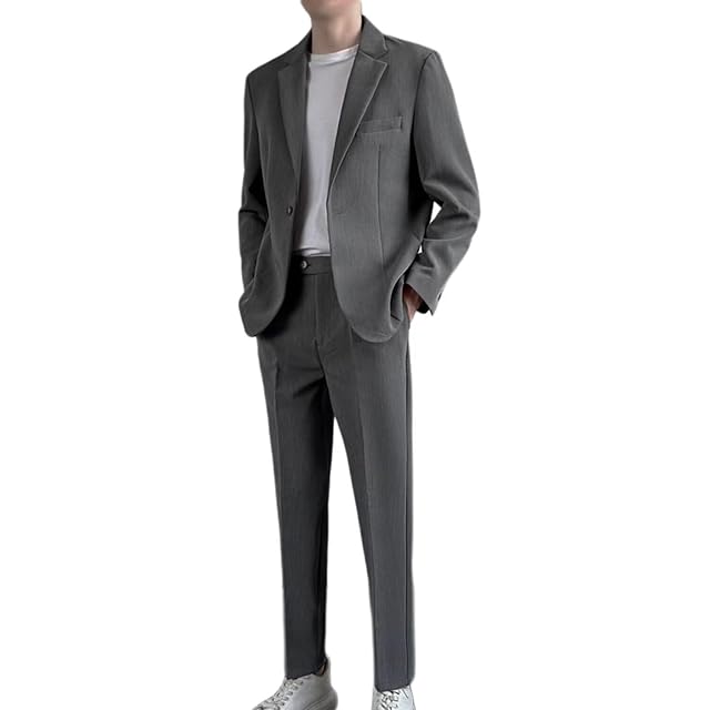 [Yucahype] スーツ メンズ 2点セット カジュアル 上下セット スリム セットアップ テーラード ジャケット ブレザー フォーマル スラックス ロングパンツ 無地 ワンボタン 通勤通学 就職 入学式 卒業式(L グレー)