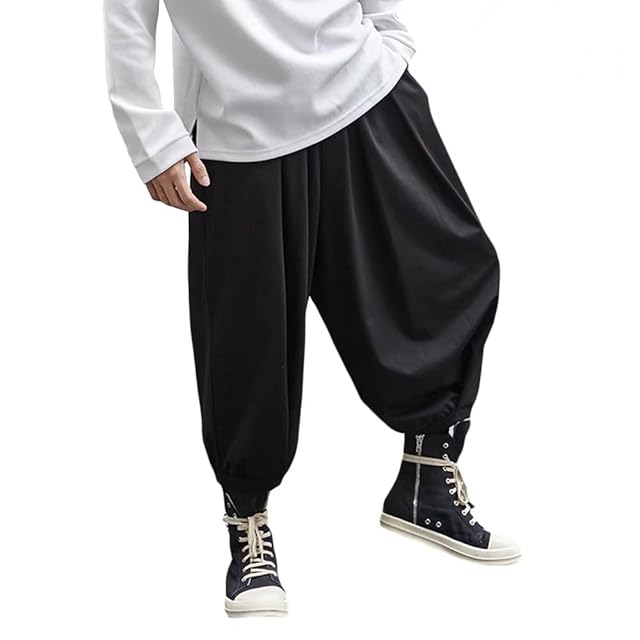 [WEEN CHARM] サルエルパンツ 変形 アラジンパンツ メンズ 巻きドレープ ワイド ジョガーパンツ ゆったり 男女兼用 オシャレ 袴パンツ ウエストゴム リラックスパンツ ヒップホップ ブラック系 オールシーズン対応 | Trend Design BASE店