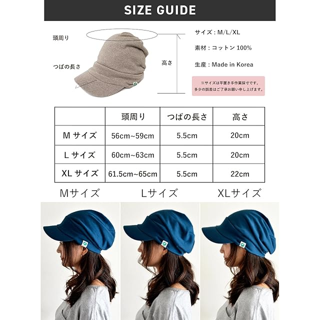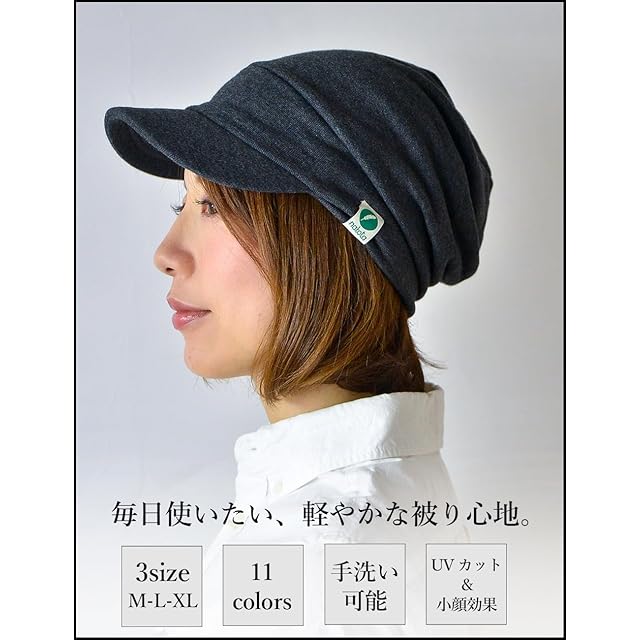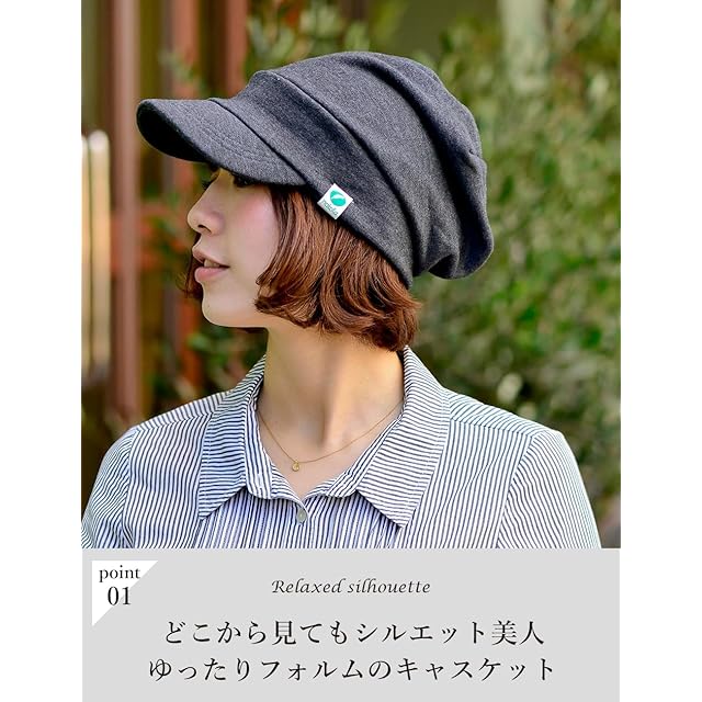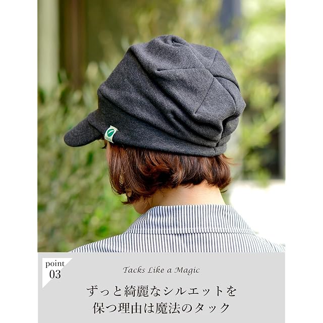【自分らしく安心して綺麗に被る。忙しい朝もサッとふんわり包み込む。】気持ち良く頭を優しく包み込むスウェット素材のキャスケット。頭の小さめの方、大きめの方にも被って頂きやすい3サイズ展開。気になる紫外線からも守ってくれるうえ、小顔効果だって期待できます。後ろのタックがシルエットをきれいに整えてくれるので1日中シルエット美人!伸縮性にも優れているので頭の大きさに合わせて気持ち良くフィット。その為、嫌な締め付けなどは感じず快適に被って頂けます。