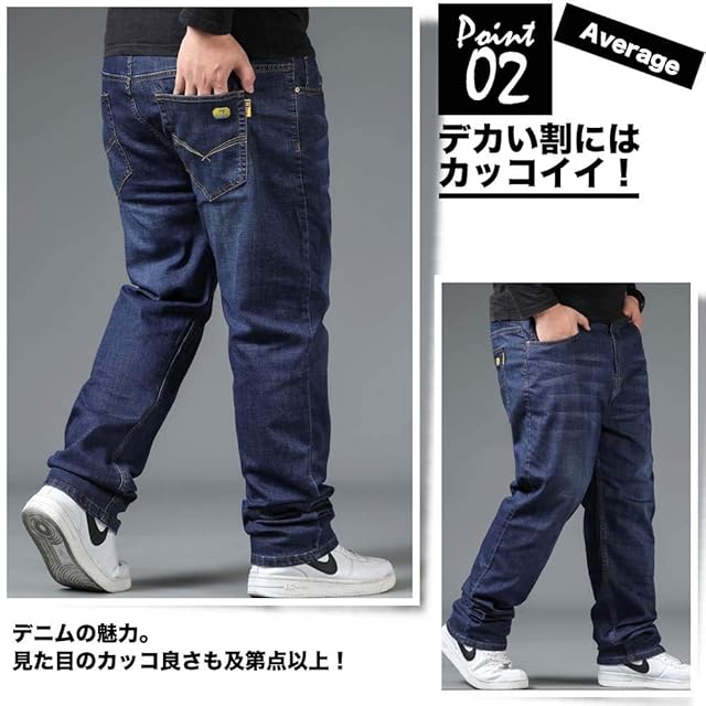商品名:[Make 2 Be] メンズ デニムパンツ 大きいサイズ ストレート 大きいデニム 太め ジーンズ Gパン ワイド JEANS ビックサイズ ゆったり 弱ストレッチ バギーパンツ カーゴパンツ ヒップホップ T01 (28.BLACK_38)