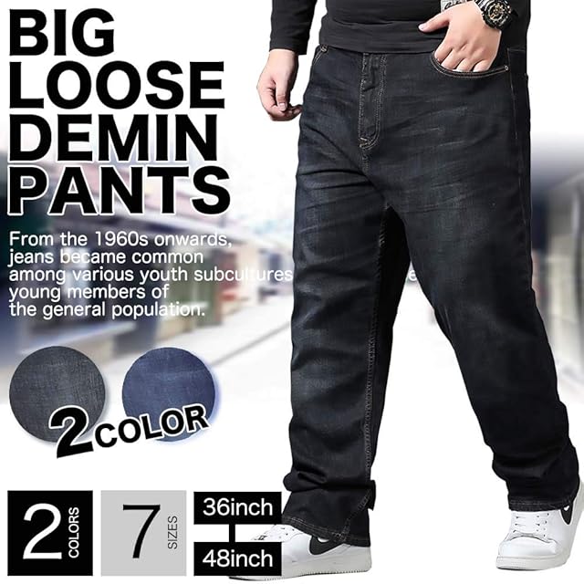 [Make 2 Be] メンズ デニムパンツ 大きいサイズ ストレート 大きいデニム 太め ジーンズ Gパン ワイド JEANS ビックサイズ ゆったり 弱ストレッチ バギーパンツ カーゴパンツ ヒップホップ T01 (28.BLACK_38) | Trend Design BASE店